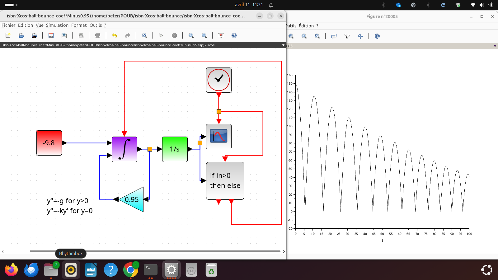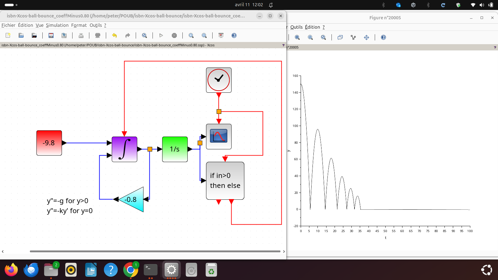 Runge-Kutta (fix epsilon step) or Dormand-Prince (varying step). But here : auto step LSodar in order to modify absolute and relative tolerance from 10e-6 to 10e-10 as a test, even if not conclusive !